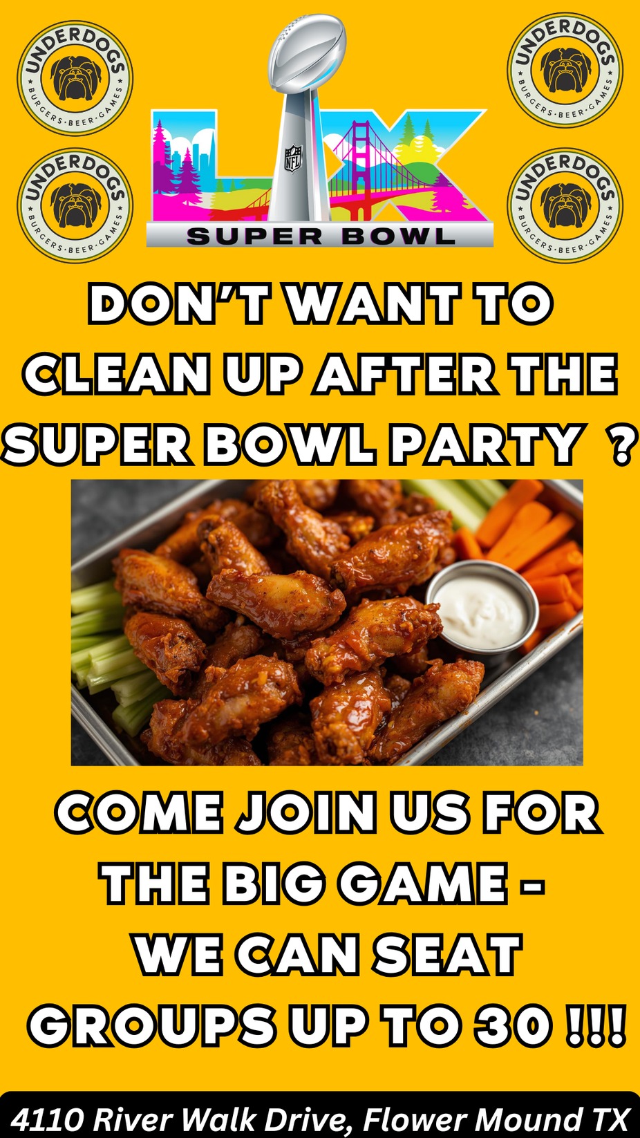 Super Bowl Party at Underdogs !!!