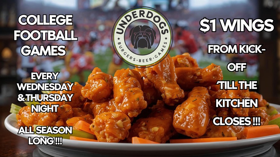 Underdogs will be closed for a Private Football Viewing Event on Monday, Jan 12th. Reach out today to learn more about how to have the whole place to yourself !!!